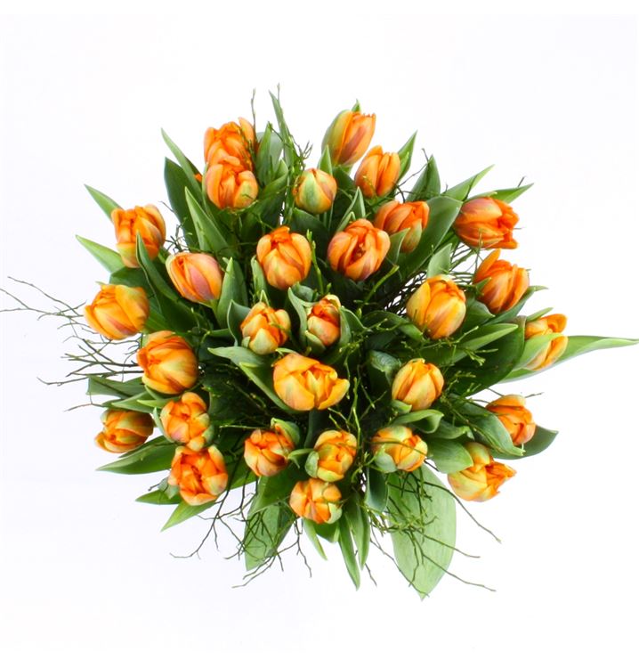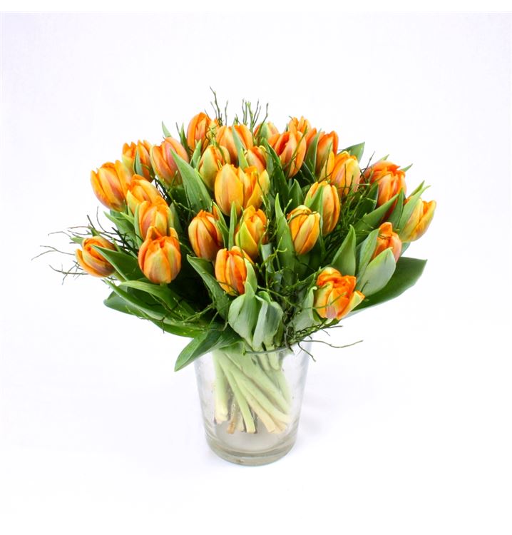 Überbringen Sie Ihre Grüße mit diesem leuchtend orangefarbenen Strauß Tulpen. Tulpen mit zartem Beiwerk. Die Abbildung entspricht der mittleren Preiskategorie.