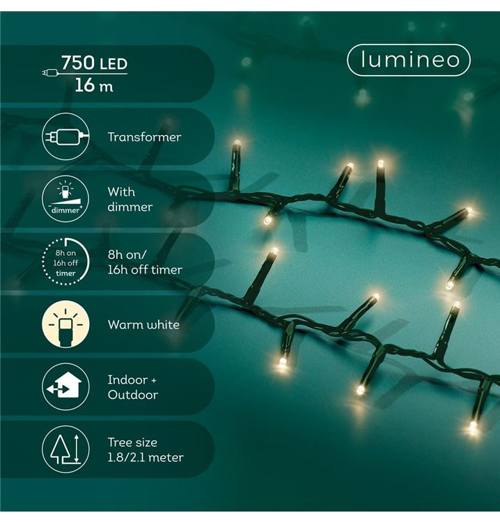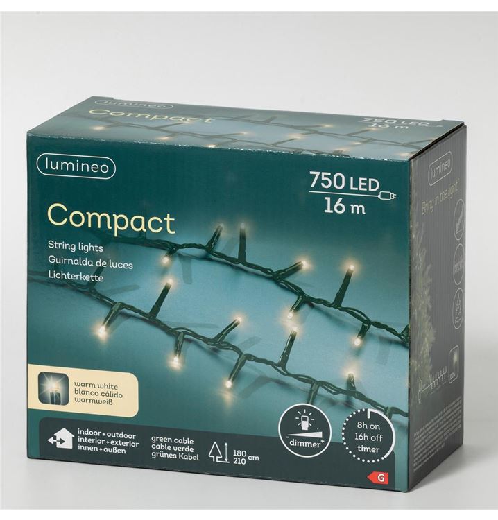 Diese hochwertige LED Compact Lichterkette sorgt im Innen- und Außenbereich für eine besonders dichte, stimmungsvolle Beleuchtung. Mit 16 Metern Länge und einem dezenten grünen Kabel fügt sie sich ideal in Weihnachtsbäume und natürliche Umgebungen ein.